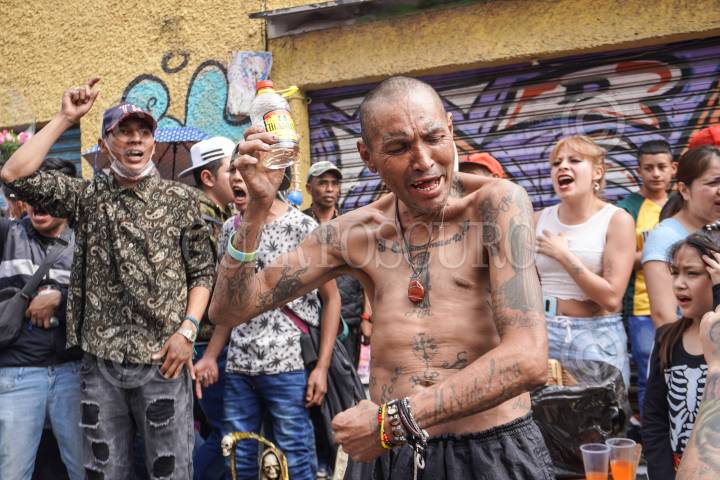 CIUDAD DE MÉXICO, 01NOVIEMBRE2022.- El barrio de Tepito registró una concurrencia de mujeres, niños, jóvenes y adultos mayores cuyo objetivo era llegar o acercarse lo más posible al altar de la Santa Muerte. Cada primero de noviembre cientos de devotos de la también llamada “Niña Blanca” acuden hasta uno de sus altares más populares en la Ciudad de México a visitarla y cumplir sus mandas, llevando ofrendas como alcohol o puros. Los cigarros o puros que se le ofrecen deberán estar encendidos colocados a un lado de ella. Se dice que cuando encienda un cigarro, uno es para uno es para uno mismo y el otro es para la Santa Muerte, esto ayudará a alejar la envidia en torno del trabajo y la familia. En caso de ofrendar un puro deberá encenderlo y fumarlo exhalando el humo directamente a la Santa Muerte, ya que ayudará a que se purifique el altar y se aleje toda energía negativa puede hacerlo las veces que lo crea conveniente. FOTO: ELIZABETH RUIZ/CUARTOSCURO.COM