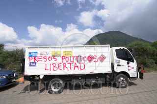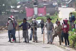 NAHUATZEN, MICHOACÁN, 01NOVIEMBRE2022.- Habitantes de la comunidad indígena de Turícuaro exigen la liberación inmediata de tres normalistas que se encuentran detenidos desde el pasado jueves por haber quemado un camión de carga sobre la carretera Cherán-Carapan, a la altura de Cheranástico. Este martes comuneros tiene retenidos como 8 vehículos como medida de presión para la liberación de los estudiantes retenidos. FOTO: JUAN JOSÉ ESTRADA SERFAÍN/CUARTOSCURO.COM