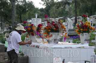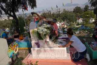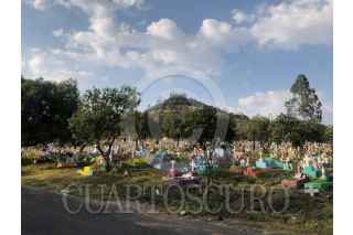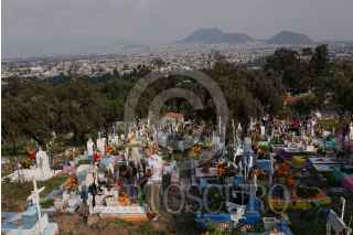 COUDAD DE MÉXICO, 01NOVIEMBRE2022.- En el marco del festejo de Día de Muertos, familias acudieron a colocar flores de cempasúchil y preparar las tumbas de sus seres queridos en el Panteón Civil San Nicolás Tolentino, en la alcaldía Iztapalapa. FOTO: GRACIELA LÓPEZ / CUARTOSCURO.COM