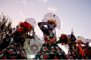 SOLEDAD ETLA, OAXACA, 01NOVIEMBRE2022.- Cientos de personas acudieron este martes a la tradicional muerteada de Soledad Etla, luego de dos años de suspensión debido a la Covid-19. Los habitantes de esta localidad se esmeraron en sus disfraces para representar personajes clásicos como diablos y calaveras, además de personajes fantásticos. FOTO: CAROLINA JIMÉNEZ/CUARTOSCURO.COM