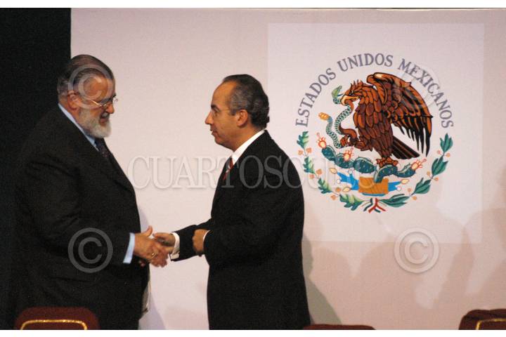MÉXICO D.F. 23FEBRERO2007.- José Luís Soberanes presidente de la Comisión Nacional de Derechos Humanos, realizó la entrega de su informe al presidente Felipe Calderón Hinojosa acompañados del periodista Joaquín Lopéz Doriga, esto la residencia oficial delos Pinos. FOTO: GUILLERMO PEREA/CUARTOSCURO.COM
