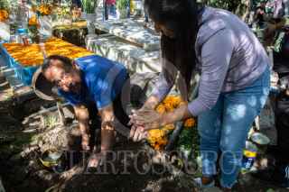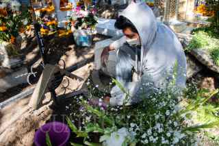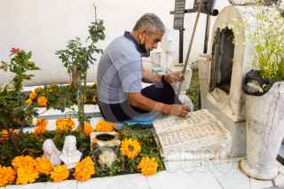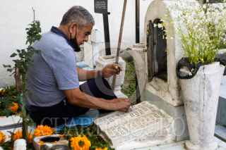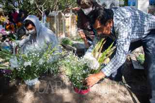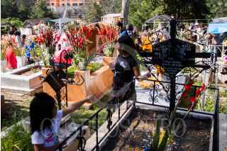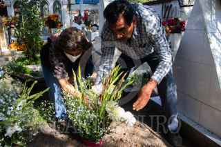 CIUDAD DE MÉXICO, 02NOVIEMBRE2022.- El panteón del pueblo de Santa Fé, este día contó mucha asistencia de personas que acudieron a vistar a su seres queridos. Rezos canciones y arreglos a las tumbas parte de los festejos de los fieles difuntos. FOTO: VICTORIA VALTIERRA/CUARTOSCURO.COM