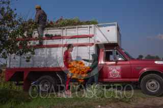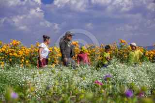 SAN BARTOLOMÉ DOXEY, MUNICIPIO DE TLAXCOAPAN, HIDALGO 02NOVIEMBRE2022.- Desde el mes de junio comienzan la sembrar nube, mano de león, crisálida, besos, para cosecharlas en estos días de muertos. Al pié de la parcela las personas acuden a comprar ya sea por manojo o por mayoreo. Desde 1996 esta comunidad ha dedicado sus esfuerzos y conocimientos para desarrollar una mejor floricultura. Así, Carlos Cruz Martínez, María de La Paz Mejía, Irma Rivas Tovar, Areli Rivas Tovar, Eusebio Hernandez Rodríguez, entre otros, esperan estas fechas para vender sus cultivos. A estas parcelas también acuden niños, que ayudan a sus padres y abuelos al corte y carga de los manojos de flor, ya que algunos no tienen clases y prefieren ir al corte de la flor. FOTO: JUAN PABLO ZAMORA /CUARTOSCURO.COM