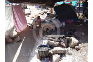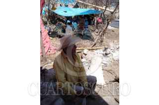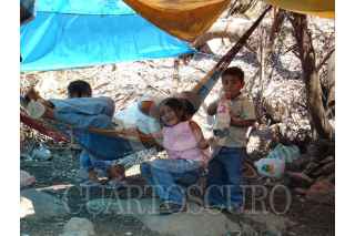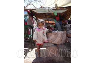 CARRIZALILLO GUERRERO23FEBRERO2007.- Una nña camina descalza, por el campamento que mantienen ejidatarios de la comunidad de Carrizalillo en la entrada a la mina "Los Filos" de la compañia minera Luismin, desde hace mas de un mes, el cual podria levantarse este sabado al llegar a un arreglo con la empresa. FOTO: OSCAR LAVARADO/CUARTOSCORO.COM