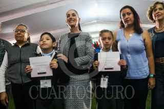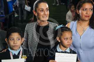 CIUDAD DE MÉXICO. 03NOVIEMBRE2022.- Claudia Sheinbaum Pardo, Jefa del Gobierno de la Ciudad, entrego a niños de la alcaldía de Coyoacán, tarjetas del bienestar, Mi Beca para Empezar ". FOTO: VICTORIA VALTIERRA/CUARTOSCURO.COM