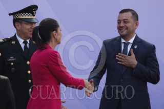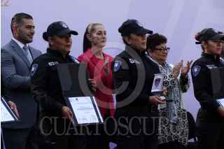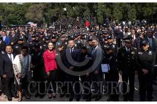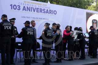 COUDAD DE MÉXICO, 04NOVIEMBRE2022.- Francisco Almazán Barocio, jefe de la Policía de Investigación; Omar Harfuch, secretario de Seguridad Ciudadana; Claudia Sheinbaum, jefa de Gobierno, y la fiscal Ernestina Godoy encabezaron la ceremonia del 103 Aniversario de la Policía de Investigación realizado en el Arco a la Patria