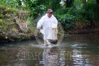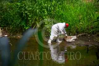 METAPÁ DE DOMÍNGUEZ, CHIAPAS, 04NOVIEMBRE2022.- Un empresa para el retiro de residuos contaminantes se encuentra laborando en las inmediaciones del río San Antonio en la comunidad de Metapá de Domínguez, debido al derrame de Diésel hace aproximadamente una semana. Pobladores comenzaron a notar manchas y fuerte olor de combustible, así como cuadro de dolor de cabeza y enrogecimiento en la piel. Se presume que fue al interior del programa de MOSCAMED donde un accidente provocó la liberación del contaminante. El impacto ecológico aún no es medible pues el agua del dicho cuerpo se utiliza para el riego. FOTO: DAMIÁN SÁNCHEZ/CUARTOSCURO.COM