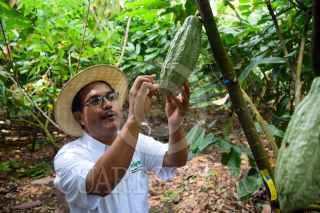CACAHOATÁN, CHIAPAS, 04NOVIEMBRE2022.- Uno de los problemas más fuertes que sufren los sembradíos de cacao de la región sureste, es la “moniliasis” (causada por un hongo y la Mancha Negra). Tal problema, ha llevado a los agricultores a trabajar en el programa del campo experimental para el cruzamiento de variedades que se caracterizan por tener un alto rendimiento y resistencia ante dichas enfermedades. Carlos Hugo Avendaño, jefe del Campo Experimental Rosario Izapa, dijo que son tres principales características que están buscando en el cacao; alto rendimiento, tolerancia a las enfermedades, calidad y aroma. El Instituto Nacional de Investigaciones Forestales, Agrícolas y Pecuarias (INIFAP) ha bautizado a esta variedad de cacao como “regalo de Dios”. Que con una producción de 19,000 frutos han logrado comprobar su tolerancia de hasta un 90% ante plagas y solo el 10% presenta afectación. El proyecto tiene en mente el incremento del jardín para disponer más de 500,000 yemas y hacer una propagación masiva, y así dar solución a la demanda de plantas tolerantes a las plagas. La investigación tardó 10 años en generar este tipo de semilla, que ha sido evaluada en diferentes ambientes y garantizar su resistencia. FOTO: DAMIÁN SÁNCHEZ/CUARTOSCURO.COM