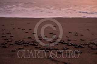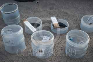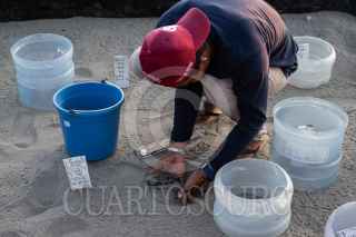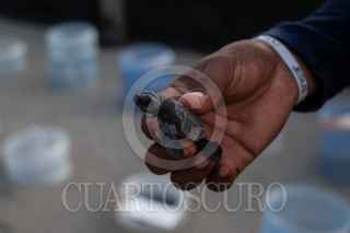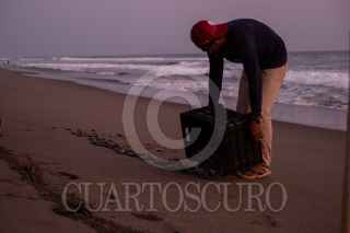 TONALÁ, CHIAPAS, 04NOVIEMBRE2022.- Esdras es un compañero del campamento tortuguero de Puerto Arista y que desde hace más de cuatro años recolecta las tortugas que eclosionan durante el día para después liberarlas en la orilla de la playa. A fin de que estas tomen su camino y después, cuando cumplan entre diez y quince años, puedan tener la oportunidad de regresar al lugar donde nacieron, en su temporada de anidación. Por ser la tortuga golfina una especie en peligro de extinción, desde hace varias décadas la SEMAHN realiza estrategias de conservación, protección y concientización sobre los peligros de esta especie del reino animal, que lleva en la tierra más años que los de la historia de la humanidad. El objetivo de los cuatro campamentos tortugueros en la región es liberar 300 mil crías de tortuga por año, apostando a que aproximadamente sean 300 las que lleguen a la etapa adulta y poder repetir el ciclo. FOTO: ISABEL MATEOS/CUARTOSCURO.COM