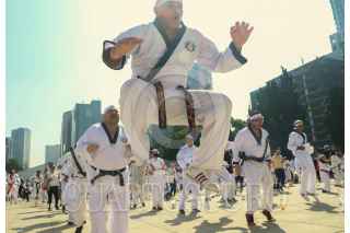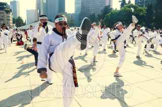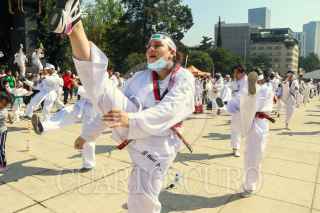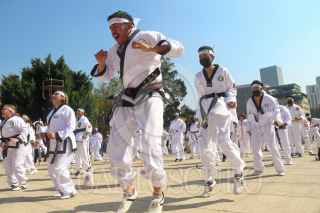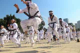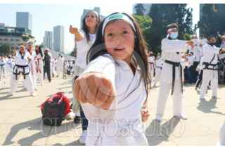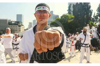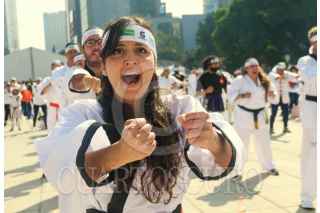 CIUDAD DE MÉXICO. 06NOVIEMBRE2022.- Clase masiva de Karate y otras artes marciales que organizo el Gobierno Capitalino a través del Instituto del Deporte, en la explanada del monumento a la Revolución. FOTO: VICTORIA VALTIERRA/CUARTOSCURO.COM