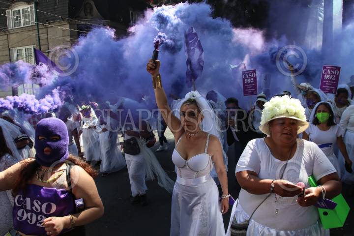 CIUDAD DE MÉXICO, 07NOVIEMBRE2022.- Mujeres autonombradas como Organización de colectivas de mujeres se manifestaron vestidas de novia frente a la Fiscalía Especializada del combate contra la corrupción de la fiscalía general por las mujeres del caso 992 de violencia vicaria donde solicitaron una audiencia con María de la Luz Mijangos Borja para la entrega física de hechos por corrupción de Leonel Ramírez Farías. FOTO: ANDREA MURCIA /CUARTOSCURO.COM