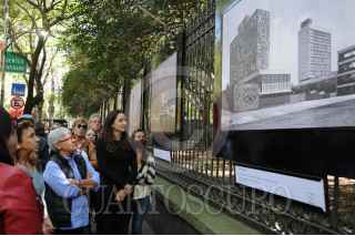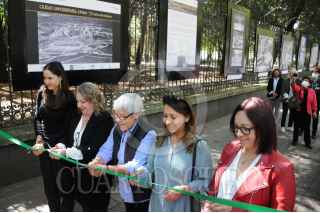 CIUDAD DE MÉXICO, 07NOVIEMBRE2022.- Claudia Curiel de Icaza, secretaria de Cultura local y Mónica Pacheco, directora del Bosque de Chapultepec, inauguraron la exposición fotográfica "Ciudad Universitaria, 70 Años de Historia" la cual estará colocada en las rejas de Chapultepec apartir de este día. FOTO: DANIEL AUGUSTO /CUARTOSCURO.COM