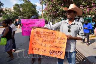 CHILPANCINGO, GUERRERO, 07NOVIEMBRE2022.- Integrantes de la Unión de Pueblos y Organizaciones del Estado de Guerrero (UPOEG) protestaron afuera de la Fiscalía General del Estado para exigir la renuncia de la fiscal, Sandra Luz Valdovinos Salmerón, a quien acusaron de no dar ningún resultado en materia de justicia ante hechos graves de violencia, como la masacre en San Miguel Totolapan, el asesinato de 3 indígenas en Chilapa el presunto robo de 10 millones de pesos que hubo dentro de la dependencia, y la supuesta persecución a la organización en los últimos meses. Plácido Valerio señaló que desde la llegada de la Fiscal se ha militarizado la dependencia, hay “tortura” a los trabajadores y no ha detenido a ningún líder importante de grupos delictivos generadores de violencia en la entidad; por el contrario. FOTO: DASSAEV TÉLLEZ ADAME/CUARTOSCURO.COM