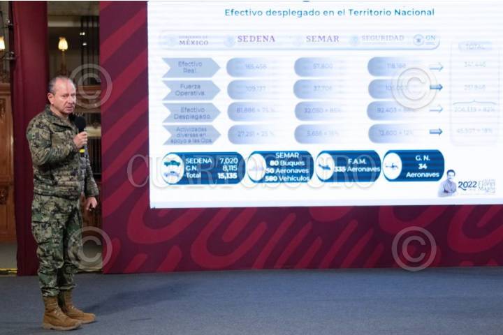 CIUDAD DE MÉXICO, 08NOVIEMBRE2022.- Andrés Manuel López Obrador, Presidente de México; Rosa Icela Rodríguez, secretaria de Seguridad y Protección Ciudadana; Luis Cresencio Sandoval, secretario de la Defensa Nacional; Jesús Ramírez Cuevas, Vocero de la Presidencia; José Rafael Ojeda Durán, secretario de Marina; y Luis Rodríguez Bucio, comandante de la Guardia Nacional, durante la mañanera en Palacio Nacional. FOTO: PRESIDENCIA/CUARTOSCURO.COM
