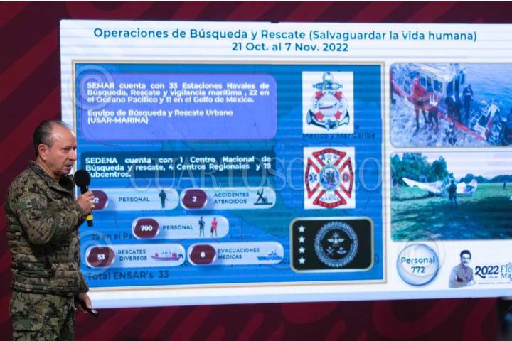 CIUDAD DE MÉXICO, 08NOVIEMBRE2022.- Andrés Manuel López Obrador, Presidente de México; Rosa Icela Rodríguez, secretaria de Seguridad y Protección Ciudadana; Luis Cresencio Sandoval, secretario de la Defensa Nacional; Jesús Ramírez Cuevas, Vocero de la Presidencia; José Rafael Ojeda Durán, secretario de Marina; y Luis Rodríguez Bucio, comandante de la Guardia Nacional, durante la mañanera en Palacio Nacional. FOTO: PRESIDENCIA/CUARTOSCURO.COM