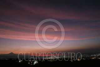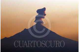CUERNAVACA, MORELOS, 08NOVIEMBRE2022.- El volcán Popocatépetl arroja una exhalación de gases, agua y vapor durante el amanecer de este día, imagen tomada desde Cuernavaca. FOTO: MARGARITO PÉREZ RETANA / CUARTOSCURO.COM