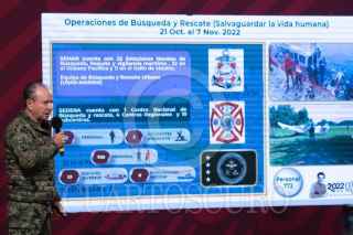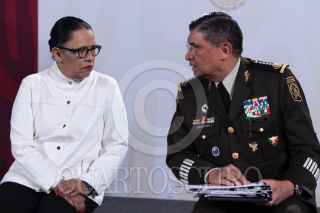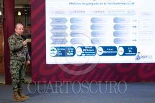 CIUDAD DE MÉXICO, 08NOVIEMBRE2022.- Andrés Manuel López Obrador, Presidente de México; Rosa Icela Rodríguez, secretaria de Seguridad y Protección Ciudadana; Luis Cresencio Sandoval, secretario de la Defensa Nacional; Jesús Ramírez Cuevas, Vocero de la Presidencia; José Rafael Ojeda Durán, secretario de Marina; y Luis Rodríguez Bucio, comandante de la Guardia Nacional, durante la mañanera en Palacio Nacional. FOTO: PRESIDENCIA/CUARTOSCURO.COM