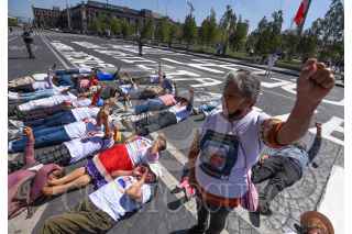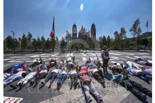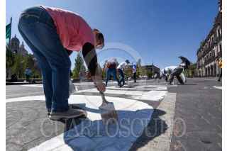 TOLUCA, ESTADO DE MÉXICO, 08NOVIEMBRE2022.- Integrantes de Haz Valer mi Libertad retomaron sus protestas en la capital mexiquense frente a Palacio de Gobierno exigiendo libertad para los injustamente presos, pintaron en la calle de Lerdo de Tejada “Seguimos Aquí” Dignidad y Justicia, Libertad, Verdad y Justicia. FOTO: CRISANTA ESPINOSA AGUILAR /CUARTOSCURO.COM