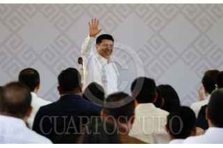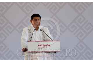 OAXACA, OAXACA, 08NOVIEMBRE2022.- El gobernador electo de Oaxaca, Salomón Jara Cruz, quien tomará posesión del cargo el próximo 1º de diciembre, presentó a la primera parte de los miembros de su gabinete. Ante morenistas, detalló que se respetará la paridad de género, además anunció el cambio de nombre de algunas secretarias y la creación de la secretaria de educación estatal. FOTO: CAROLINA JIMÉNEZ/CUARTOSCURO.COM