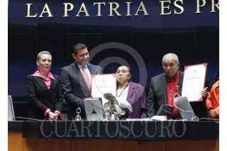 CIUDAD DE MÉXICO, 08NOVIEMBRE2022.- El Senado de la República entregó un reconocimiento a la señora Patricia Hernández y al señor Mariano Hernández -fundadores del desfile conmemorativo de la Independencia de México en la ciudad de Nueva York, Estados Unidos-, por su constante lucha para generar condiciones dignas de salud, economía y bienestar para la comunidad mexicana que radica en la Unión Americana. A nombre de la Cámara, el presidente de la Mesa Directiva, Alejandro Armenta Mier, destacó que en la primera edición de este desfile, hace 29 años, sólo acudieron media docena de connacionales, pero en el pasado mes de septiembre participaron más de 70 mil mexicanos, de diferentes estados de la República, en la avenida Madison, Manhattan. FOTO: CUARTOSCURO.COM