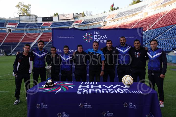 CIUDAD DE MÉXICO, 08NOVIEMBRE2022.- Los directores técnicos Mario García y Paco Ramírez de los equipos de fútbol Atlante y Celaya, ofrecieron una conferencia de prensa en el Día de Medios e la que se mostró el balón y el trofeo que se llevará el equipo ganador en la Final de la Liga BBVA Expansión. El acto se realizó en el Estadio Ciudad de los Deportes. FOTO: GRACIELA LÓPEZ / CUARTOSCURO.COM
