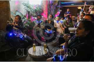 CIUDAD DE MÉXICO. 08NOVIEMBRE2022.- La agrupación La Santa Cecilia, presentó en la casa de conocida marca de jeans y chamarras, el disco Cuatro Copas, esta noche. FOTO: VICTORIA VALTIERRA/CUARTOSCURO.COM