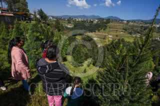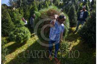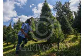 XONACATLÁN, ESTADO DE MÉXICO, 09NOVIEMBRE2022.- Productores de Árboles de Navidad del municipio de Xonacatlán dieron inició al corte de árboles navideños temporada 2022 en la plantación El Corralito Viejo en la comunidad de Santiago Tecojotillo, se tienen 110 hectáreas dedicadas a la producción de árboles de Navidad en 64 plantaciones y se tienen listos 20 mil árboles listos para su corte de las especies Oyamel, Ayacahuite y pino, dando empleo de forma directa a 300 personas, los precios van desde los 600 pesos en adelante dependiendo del tamaño del árbol. Invitan a las familias mexiquenses y de otros estados a consumir para las fiestas decembrinas árboles mexicanos que están certificados por la Secretaría del Medio Ambiente y Recursos Naturales, que son cultivados por manos de mexiquenses, se contribuye a la captación de agua, generación de oxígeno y a la economía rural. FOTO: CRISANTA ESPINOSA AGUILAR /CUARTOSCURO.COM