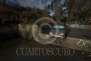 TIJUANA, BAJA CALIFORNIA, 09NOVIEMBRE2022.-Tras una intensa búsqueda en distintos lugares, esta mañana fue localizado el cuerpo de una mujer sin vida en un arrollo, a un costado del Libramiento Rosas Magallón. Los hechos ocurrieron durante la mañana, donde socorridas realizaron una intensa búsqueda de las personas desaparecidas las cuales presuntamente fueron arrastradas por la corriente en vehículo, un hombre y una mujer. El vehículo en el que se trasladaban las víctimas, Rebeca y Hugo Miranda Olivares fue localizado por agentes del cuerpo de bomberos, confirmando su pertenencia por familiares a la altura del “puente amarillo” Fiscalía del Estado está por confirmar el hecho de que el cuerpo de la mujer, se trate de la menor desaparecida la tarde de ayer. Desde las 7:00 horas elementos de salvavidas y protección civil con apoyo de familiares y civiles, se encuentran haciendo labores de búsqueda en las zonas cercanas. Policías municipales arribaron al lugar para acordonar la zona, mientras peritos criminalistas, llevaron a cabo el procedimiento correspondiente para el traslado del cuerpo. La Dirección del cuerpo de bomberos confirma la atención de 100 reportes durante las fuertes lluvias pasadas. FOTO: OMAR MARTÍNEZ /CUARTOSCURO.COM