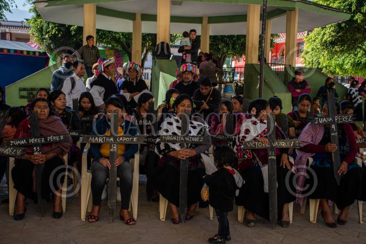 CHENALHÓ, CHIAPAS, 10NOVIEMBRE2022.- Los integrantes de La Sociedad Civil de Las Abejas de Acteal realizaron una acción pacífica en la cabecera municipal para denunciar violaciones de derechos humanos hacia miembros de Este organización por parte de personas partidistas de la región. FOTO: ISABEL MATEOS/CUARTOSCURO.COM