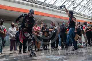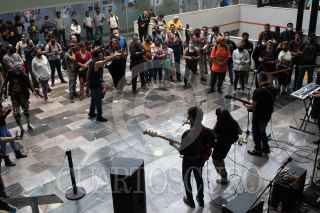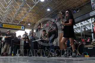 CIUDAD DE MÉXICO, Un grupo de Rockabillys ofreció un recital musical en el metro Chabacano en donde puso a bailar a los usuarios del metro que pasaban por el lugar. FOTO: MOISÉS PABLO/CUARTOSCURO.COM