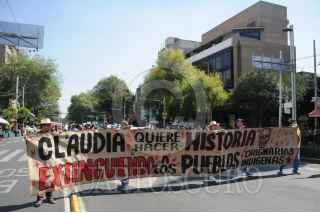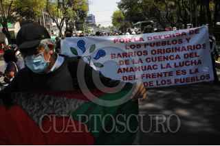 CIUDAD DE MÉXICO, 10NOVIEMBRE2022.- Habitantes de distintos pueblos originarios de la capital del país marcharon este medio día rumbo al Instituto de Planeación para manifestarse en contra de la construcción de mega proyectos y edificios habitaciones en las demarcaciones donde ellos y cientos de personas más vive, asegurando que los problemas por falta de agua aumentarán. FOTO: DANIEL AUGUSTO /CUARTOSCURO.COM