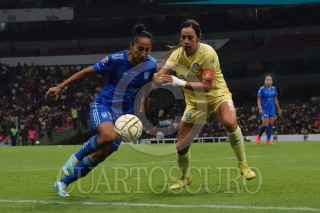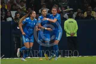 CIUDAD DE MÉXICO, 11NOVIEMBRE2022.- El equipo de Tigres Femenil ganó 1-0 contra las Águilas del América en la final de ida de la Liguilla en el Estadio Azteca. FOTO: GRACIELA LÓPEZ /CUARTOSCURO.COM