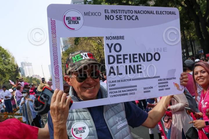 CIUDAD DE MÉXICO, 13NOVIEMBRE2022.- Ciudadanos marcharon en defensa del Instituto Nacional Electoral (INE) ante una posible reforma electoral impulsada por el gobierno federal. Los manifestantes partieron del Ángel de la Independencia rumbo al Monumento a la Revolución. Entre las personalidades que se observaron entre los contingentes están Santiago Creel, Héctor de Mauleón, y Claudio X González. La consigan principal fue "Yo vine a defender el INE", ante lo que ellos consideran como un atentado a la democracia. FOTO: MOISÉS PABLO/CUARTOSCURO.COM