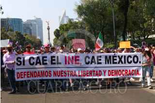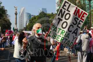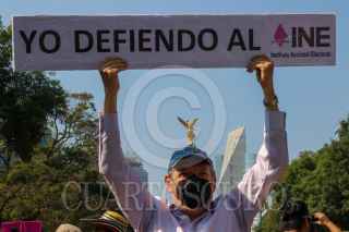 CIUDAD DE MÉXICO, 13NOVIEMBRE2022.- Ciudadanos marcharon en defensa del Instituto Nacional Electoral (INE) ante una posible reforma electoral impulsada por el gobierno federal. Los manifestantes partieron del Ángel de la Independencia rumbo al Monumento a la Revolución. Entre las personalidades que se observaron entre los contingentes están Santiago Creel, Héctor de Mauleón, y Claudio X González. La consigan principal fue "Yo vine a defender el INE", ante lo que ellos consideran como un atentado a la democracia. FOTO: MOISÉS PABLO/CUARTOSCURO.COM