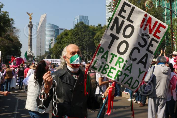 CIUDAD DE MÉXICO, 13NOVIEMBRE2022.- Ciudadanos marcharon en defensa del Instituto Nacional Electoral (INE) ante una posible reforma electoral impulsada por el gobierno federal. Los manifestantes partieron del Ángel de la Independencia rumbo al Monumento a la Revolución. Entre las personalidades que se observaron entre los contingentes están Santiago Creel, Héctor de Mauleón, y Claudio X González. La consigan principal fue "Yo vine a defender el INE", ante lo que ellos consideran como un atentado a la democracia. FOTO: MOISÉS PABLO/CUARTOSCURO.COM