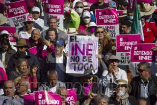 MONTERREY, NUEVO LEÓN, 13NOVIEMBRE2022.- Miles de ciudadanos se congregan en la Macroplaza para marchar en favor del INE y protestar en contra de la reforma electoral culminando en la Explanada de los Héroes. FOTO: GABRIELA PÉREZ MONTIEL / CUARTOSCURO.COM