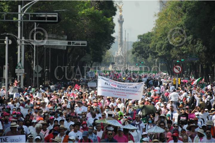 CIUDAD DE MÉXICO, 13NOVIEMBRE2022.- Miles de personas marcharon del Ángel de la Independencia rumbo al Monumento a la Revolución para manifestarse en contra de la Reforma Electoral. FOTO: DANIEL AUGUSTO /CUARTOSCURO.COM