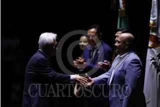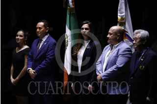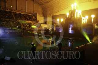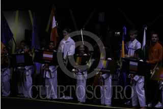 GUADALAJARA, JALISCO, 13NOVIEMBRE2022.- Enrique Alfaro, gobernador de Guanalajara; Chungwon Choue, presidente de World Taekwondo Y Ana Gabriela Guevara, titular de Comisión Nacional de Cultura Física y Deporte (CONADE) encabezaron Ceremonia de Apertura del Campeonato Mundial de Taekwondo en Centro Acuático CODE Metropolitano. FOTO: FERNANDO CARRANZA /CUARTOSCURO.COM