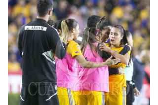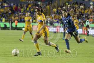 SAN NICOLÁS DE LOS GARZA, NUEVO LEÓN, 14NOVIEMBRE2022.- Tigres Femenil aventajan el marcador 1 por 0 durante el primer tiempo ante América Femenil, en la final de vuelta en el Estadio Universitario. FOTO: GABRIELA PÉREZ MONTIEL / CUARTOSCURO.COM