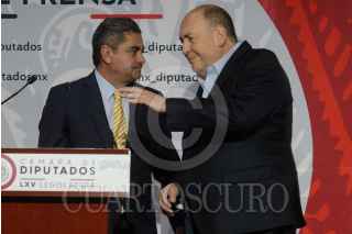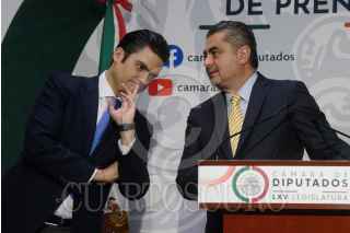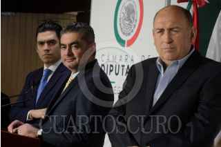 CIUDAD DE MÉXICO, 16NOVIEMBRE2022.- Los coordinadores parlamentarios: Rubén Moreira (PRI); Jorge Romero (PAN) y Luis Espinosa Cházaro (PRD), ofrecieron conferencia para informar que en alianza votarán en contra de la iniciativa de reforma constitucional en materia electoral. FOTO: MARIO JASSO/CUARTOSCURO.COM