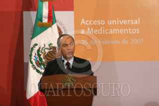MEXICO, D.F. 26FEBRERO2007.- El presidente Felipe Calderón Hinojosa durante la ceremonia para la firma del compromiso para garantizar la suficiencia, disponibilidad y precios justos de los medicamentos. FOTO: NELLY SALAS/CUARTOSCURO.COM