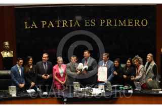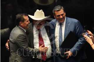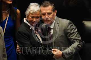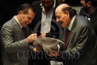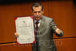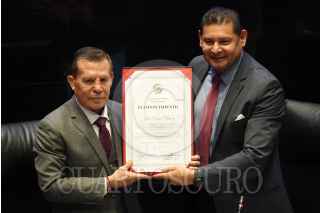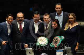 COUDAD DE MÉXICO, 16NOVIEMBRE2022.- El boxeador mundial Julio César Chávez recibió un reconocimiento por su trayectoria en el pleno del Senado de la República por parte del presidente de la mesa directiva Alejandro Armenta. Lo acompañaron su esposa Myriam Escobar y sus amistades. FOTO: GRACIELA LÓPEZ /CUARTOSCURO.COM