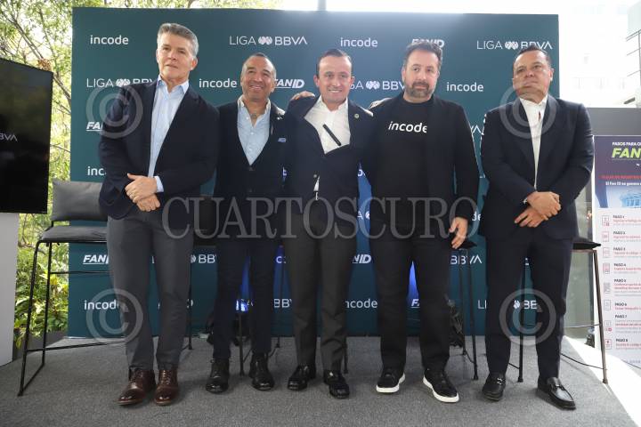 CIUDAD DE MÉXICO, 17NOVIEMBRE2022.- Presentación por parte de la LIGA BBVA MX de la plataforma de FanID para el Fútbol Mexicano. A la presentación acudieron Héctor González Iñárritu, presidente operativo del Club América; Manuel Jiménez, presidente del Club Puebla; Mikel Arriola, presidente de la Liga MX; Ricardo Amper; CEO de Incode y Víctor Velázquez presidente del Club Cruz Azul. FOTO: EDGAR NEGRETE/CUARTOSCURO.COM