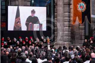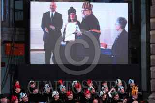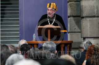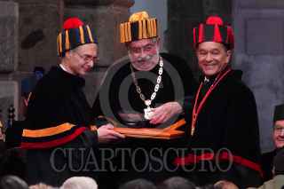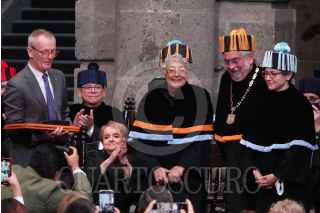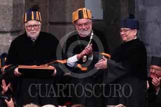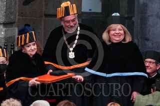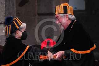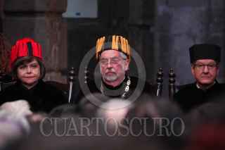 CIUDAD DE MÉXICO, 17NOVIEMBRE2022.- Enrique Grace Wiechers, rector de la Universidad Nacional Autónoma de México (UNAM), Gina Zabludovsky, secretaría de la junta gobierno, y Jonathan Davis Arzac, presidente del Patronato Universitario, encabezaron la ceremonia en que se dio el titulo de Doctor Honoris Causa a 12 profesionales de las ramas de ciencia, artes, filosofía, investigación, por mencionar algunas, en el Palacio de Minería. Los galardonados fueron: la filósofa Judith Butler; el sociólogo Manuel Castells; la botánica Joanne Chora; la matemática Ingrid Daubechies; el cineasta Guillermo del Toro; la académica María Rosario Dosal Gómez; la economista Maria Ángeles Durán; el historiador Javier Garciadiego; el artista Rafael López Castro; la escritora Angelina Muñiz Huberman; el biólogo Lourival Possani, y el jurista Ricardo Rivero Ortega FOTO: GALO CAÑAS/CUARTOSCURO.COM