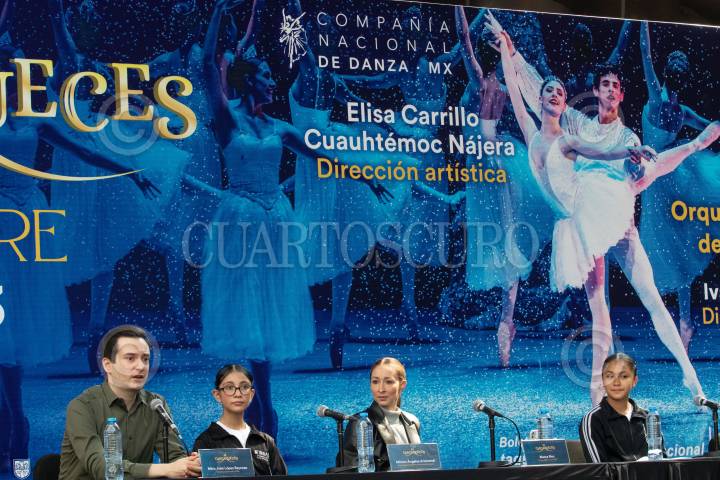 CIUDAD DE MÉXICO, 17NOVIEMBRE2022.- Iván López Reynoso director concertador OTBA; Miriam Ángeles Arizmendi, alumna de la Academia de la Danza Mexicana; Blanca Ríos, primera bailarina de la Compañía Nacional de Danza; Adriana Chávez Chimalpopoca, alumna de la Escuela Nacional de Danza Clásica y Contemporánea, y Cuauhtémoc Najera, coordinador artístico de la Compañía Nacional de Danza, anunciaron la presentación de "El Cascanueces" del 16 al 23 en el Auditorio Nacional que estará a cargo totalmente de la Compañía Nacional de Danza. FOTO: MOISÉS PABLO/CUARTOSCURO.COM