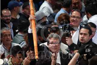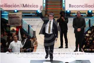 CIUDAD DE MÉXICO, 19NOVIEMBRE2022.- El senador Ricardo Monreal, coordinador de la JUCOPO, encabezó la presentación de su proyecto "Reconciliación México" en la Arena México. Durante el evento lo acompañó su esposa María de Jesús Pérez Guardado y el senador Eduardo Ramírez. FOTO: GRACIELA LÓPEZ /CUARTOSCURO.COM