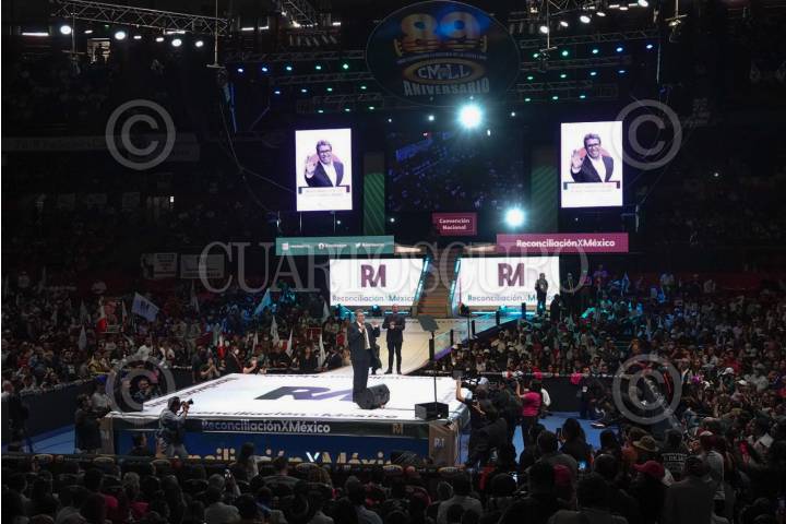 CIUDAD DE MÉXICO, 19NOVIEMBRE2022.- El senador Ricardo Monreal, coordinador de la JUCOPO, encabezó la presentación de su proyecto "Reconciliación México" en la Arena México. Durante el evento lo acompañó su esposa María de Jesús Pérez Guardado y el senador Eduardo Ramírez. FOTO: GRACIELA LÓPEZ /CUARTOSCURO.COM