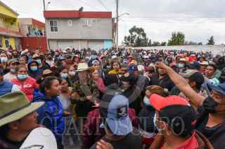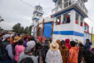 TOLUCA, ESTADO DE MÉXICO, 21NOVIEMBRE2022.- Pobladores de San Cayetano Morelos en el municipio de Toluca mantuvieron retenidos por varias horas al menos a tres personas, en la iglesia de la localidad, presuntos extorsionadores que llevan varios años amedrentando a la población y arrebatándoles terrenos del pueblo. Los ciudadanos se juntaron después de que fueran accionadas armas de fuego por los presuntos extorsionadores y se hizo el llamado a la localidad por medio de las campanas. FOTO: CRISANTA ESPINOSA AGUILAR /CUARTOSCURO.COM