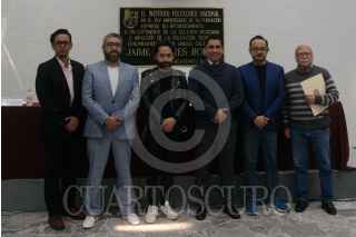 CIUDAD DE MÉXICO, 22NOVIEMBRE2022.- Arturo Figueroa, director dela División de Difusión; Germán López Tirado, jefe de la la División de Fomento y Promoción Cultural; Héctor Báez Médina, académico del Centro de Investigación en Computación; Omar Matamoros Hernández, director de Difusión Cultural del IPN; Luis Israel Martínez, integrante de Sonido Gallo Negro, y César Piña, director de escena, encabezaron conferencia del anuncio de la tercera edición del Festival Cultural “Juan García Esquivel” y de la exposición fotográfica “Innovaciones y descubrimientos de Israel para el mundo” en el centro cultural "Jaime Torres Bodet”. FOTO: MARIO JASSO/CUARTOSCURO.COM