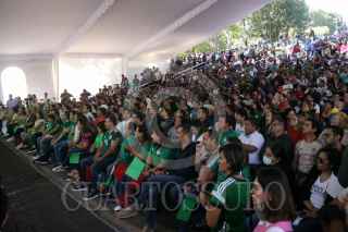 CUERNAVACA, MORELOS. 22NOVIEMBRE2022.- Decenas de aficionados se dieron cita en la Plaza de Armas de la capital para ver el partido de fútbol México vs Polonia en una pantalla que instalado el gobierno estatal. FOTO: MARGARITO PÉREZ RETANA / CUARTOSCURO.COM